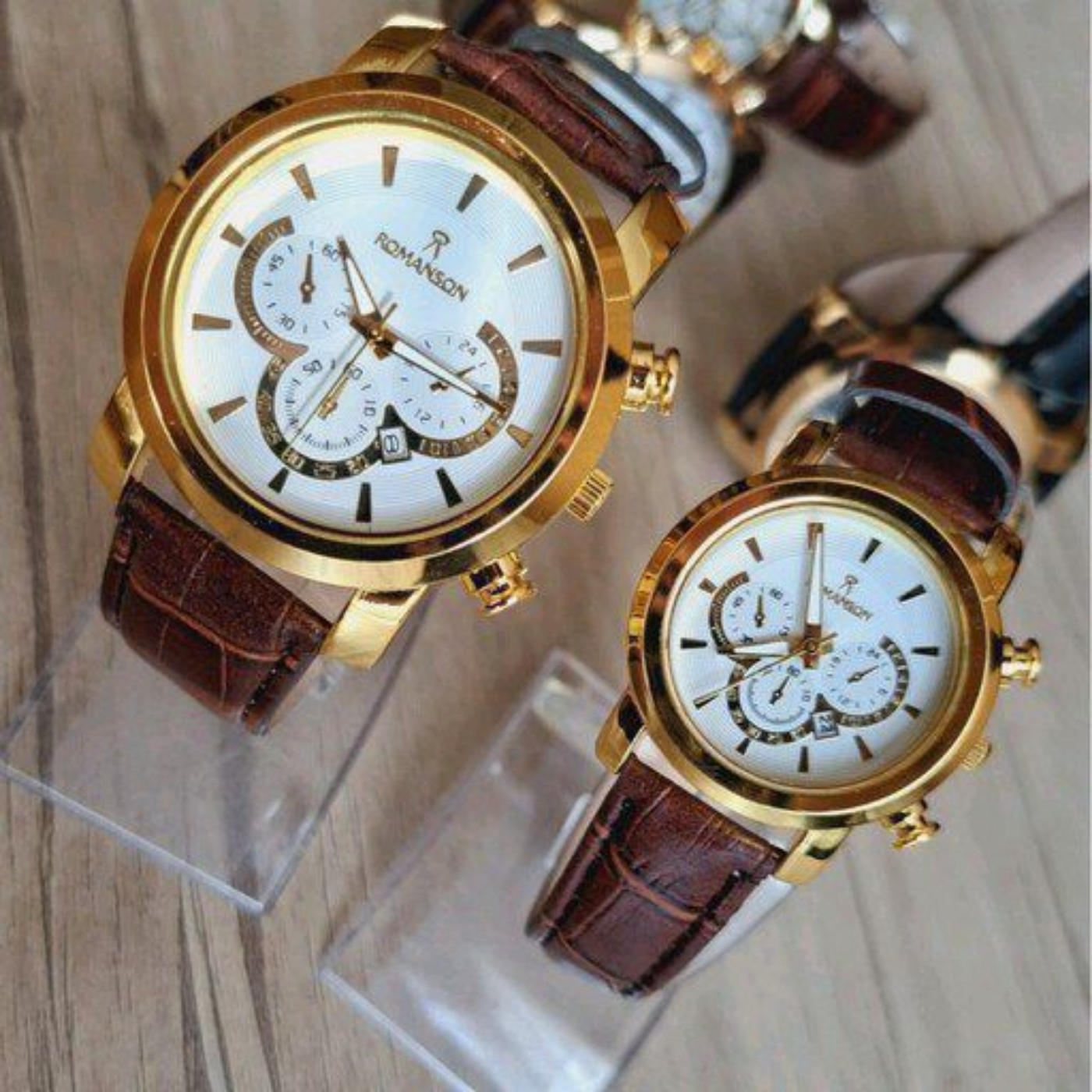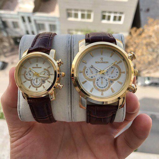ست ساعت #رومانسون #بندچرمی قهوهای | صفحه سفید