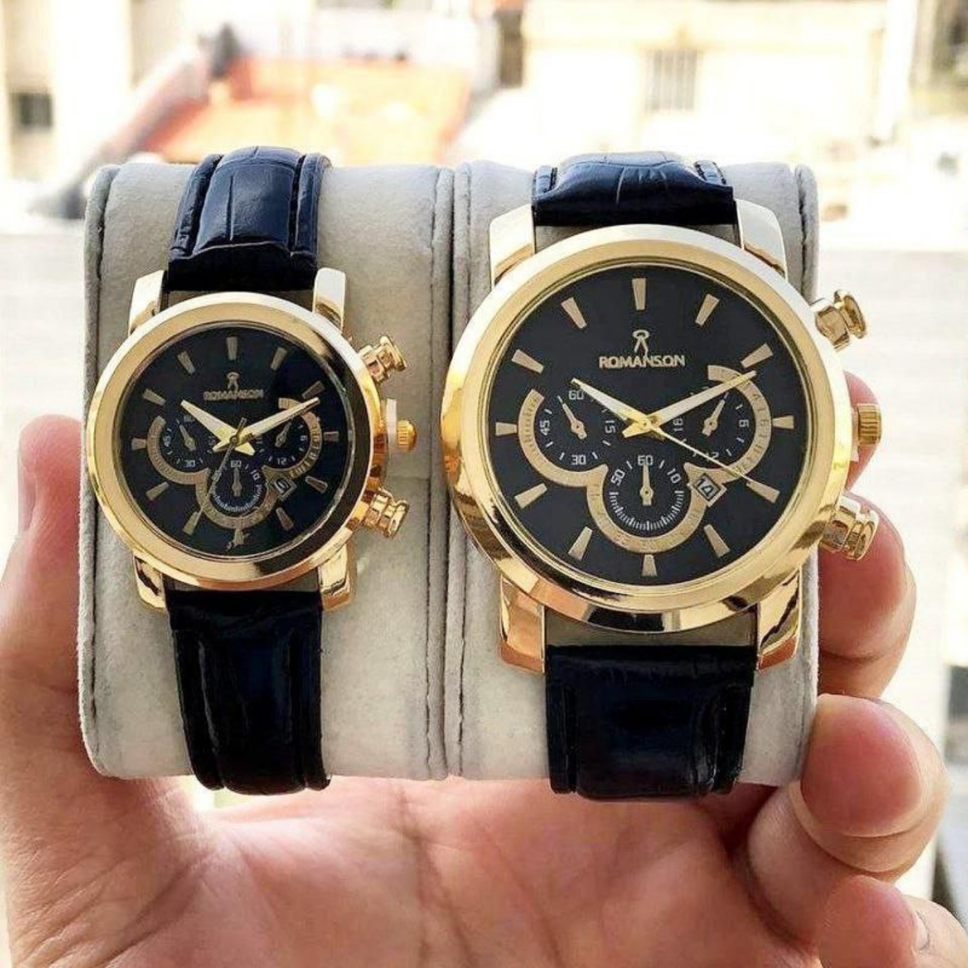 369057 🔥 ست فوق‌العاده شیک رومانسون بند چرمی مشکی 🔥 ✨ صفحه مشکی با طراحی سه موتوره جذاب ✨ دارای تقویم – کیفیت عالی و بادوام ✨ همراه با جعبه کادویی شیک 🎁 ✨ یک انتخاب خاص برای هدیه و سورپرایزهای به‌یادماندنی