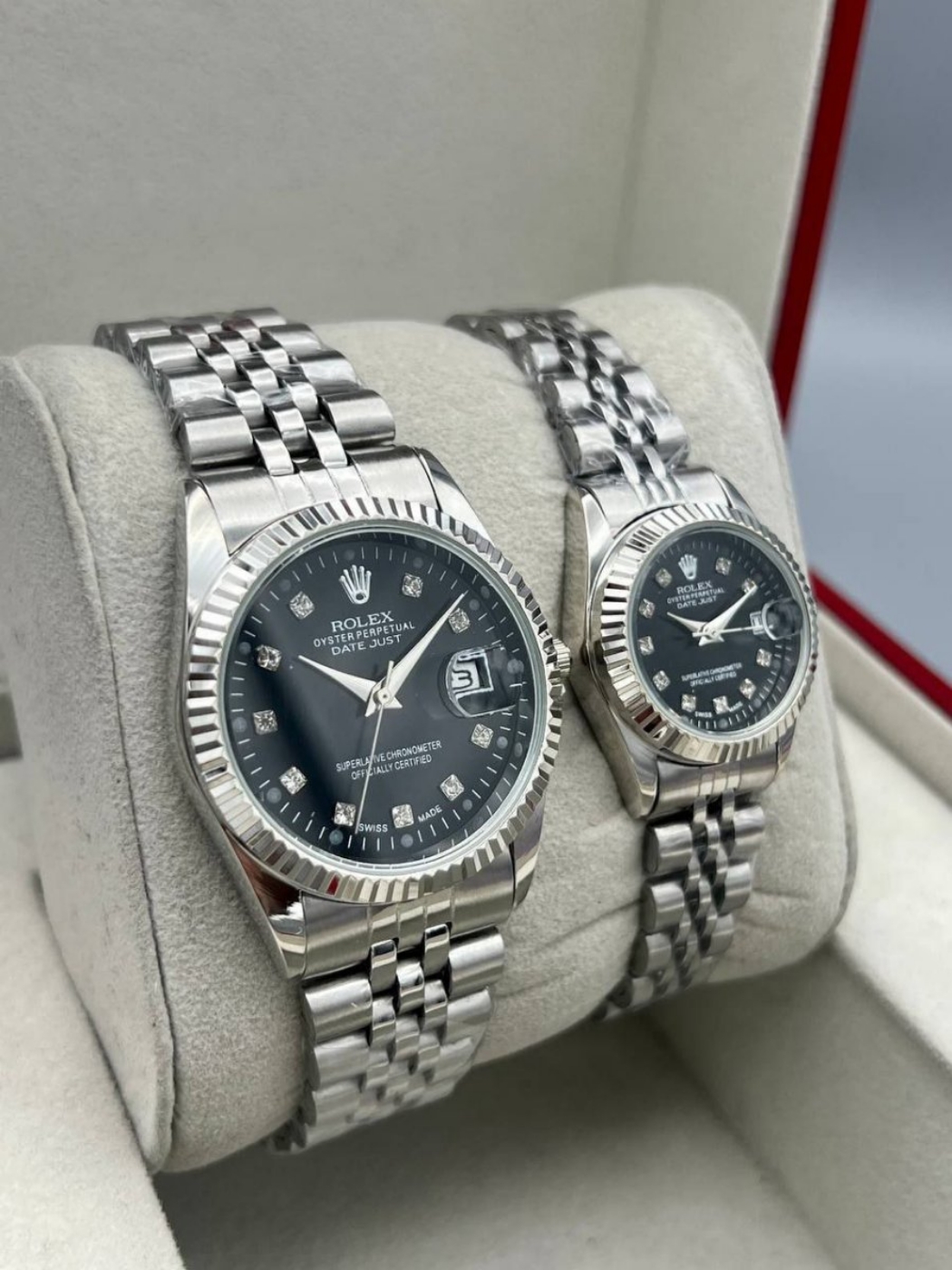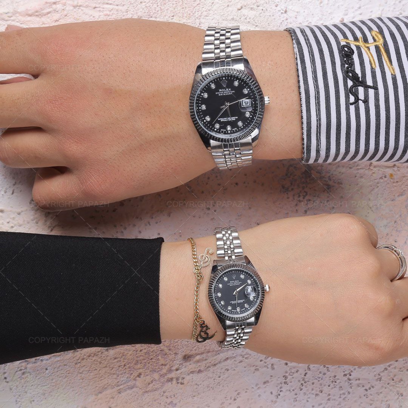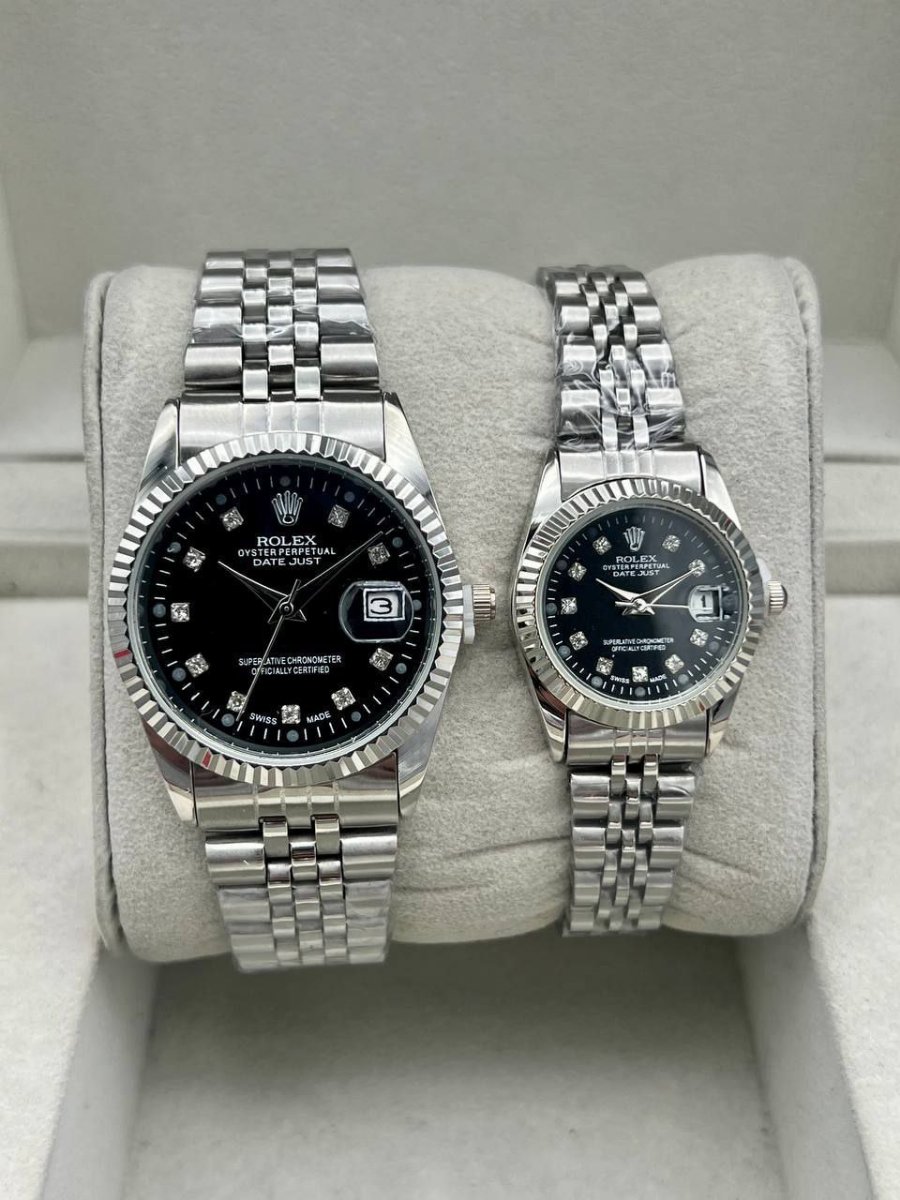 ✨ ست ساعت رولکس – بند استیل نقرهای، صفحه مشکی ✨
