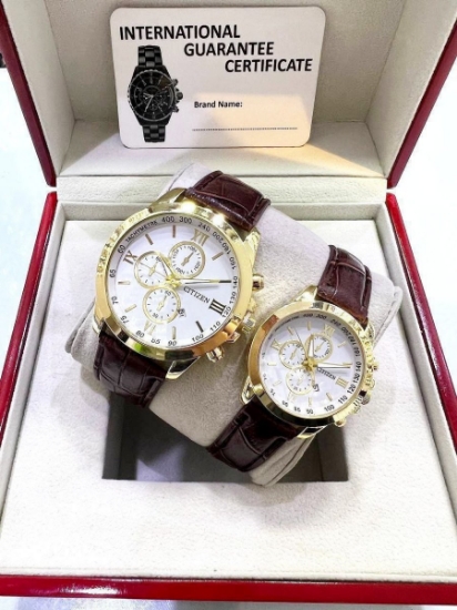 ست ساعت سیتیزن بند چرمی قهوه‌ای369140