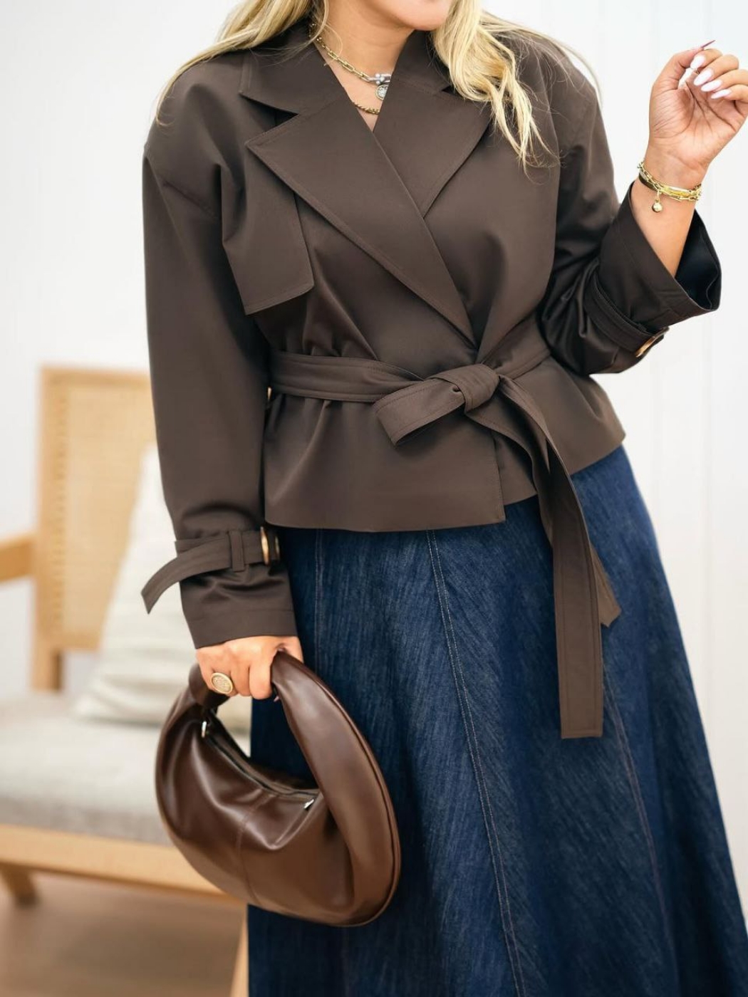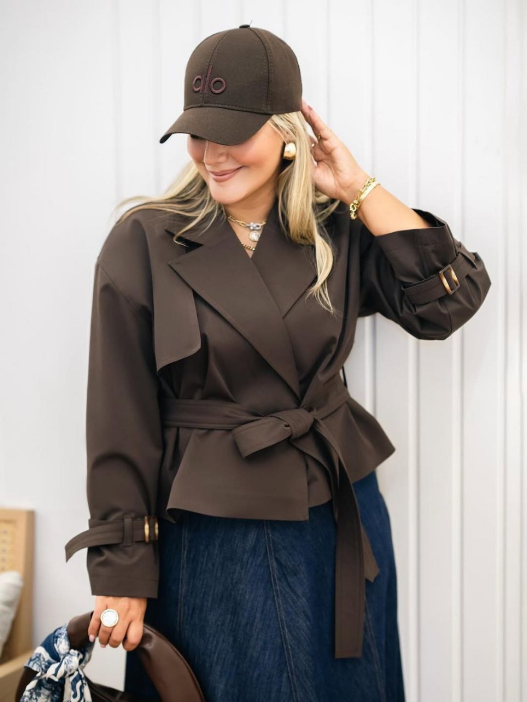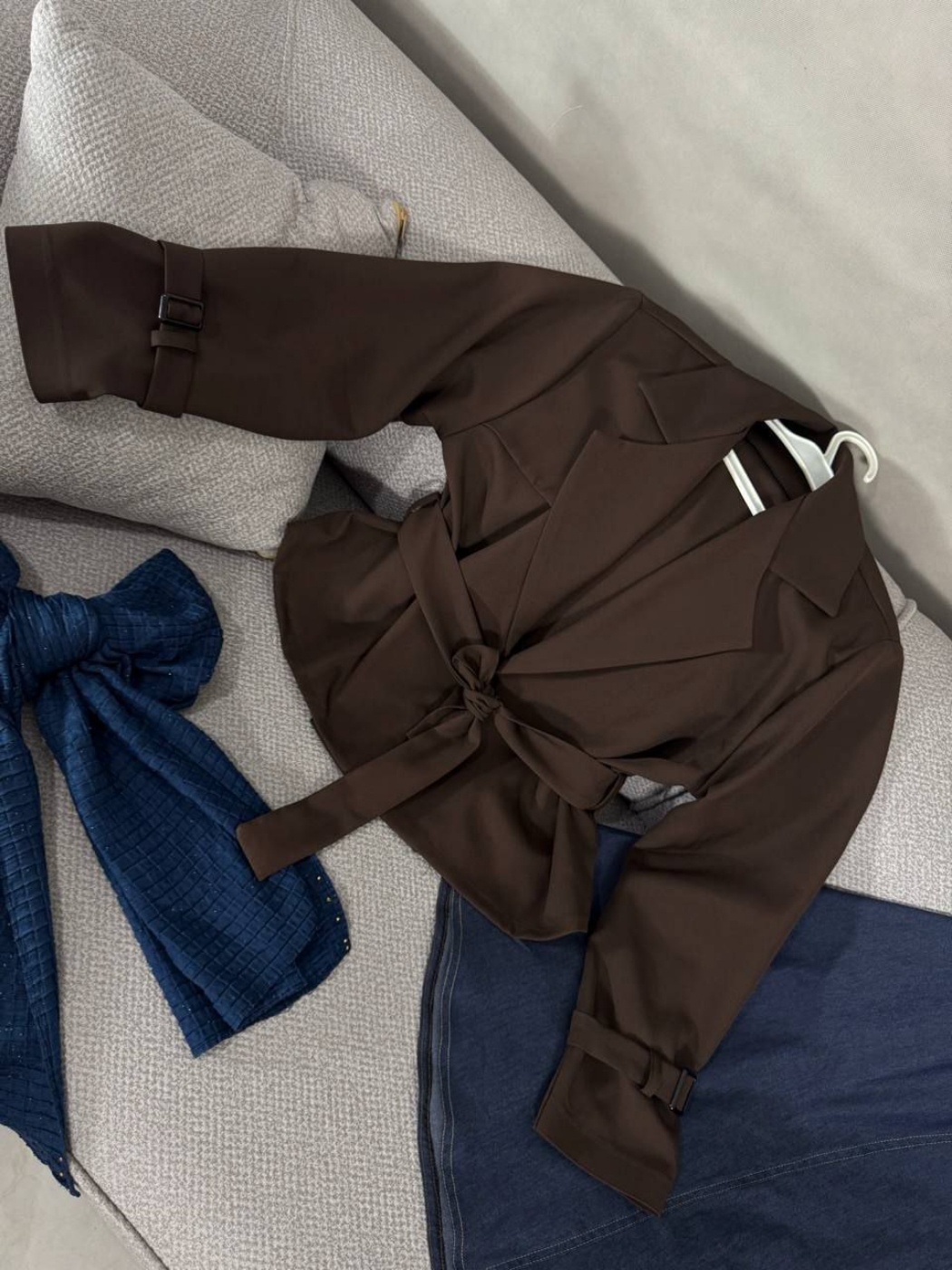 🧵جنس : جنس کت کرپ سوپر باربی درجه یک رنگ قهوه ای سوخته ترندی ،دامن جین پنبه درجه یک