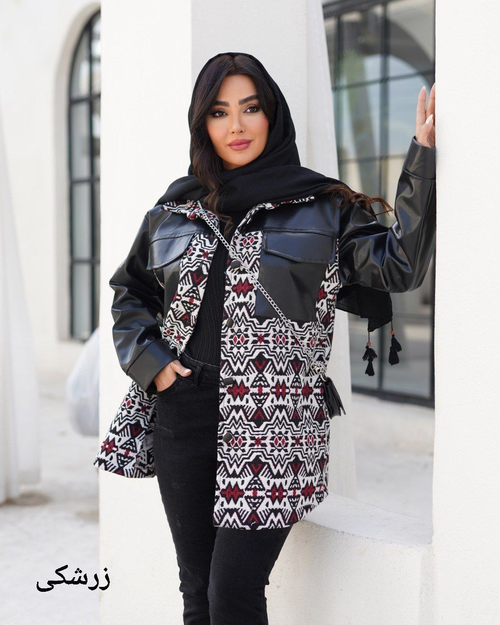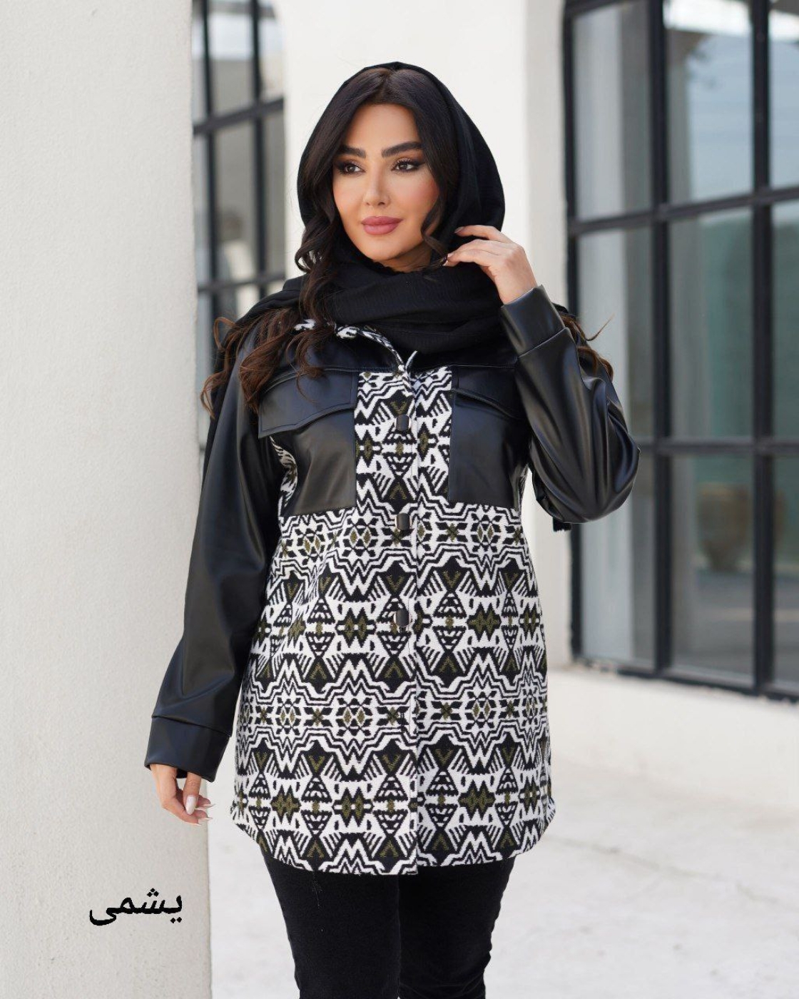 پالتو کتی ترکیب چرم تیر کمونی مدل آترین