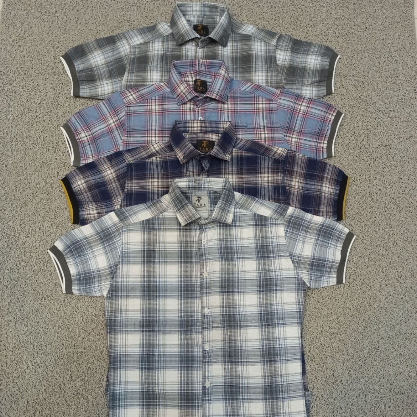 پیراهن مردانه چهارخونه استین کوتاه ۱