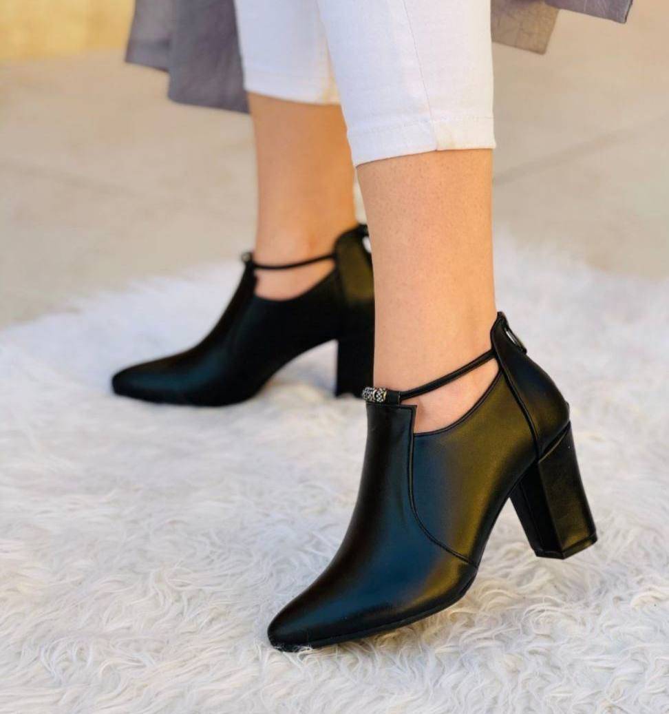کفش زنانه چرم پاشنه 7 سانتی مدل دلتا
