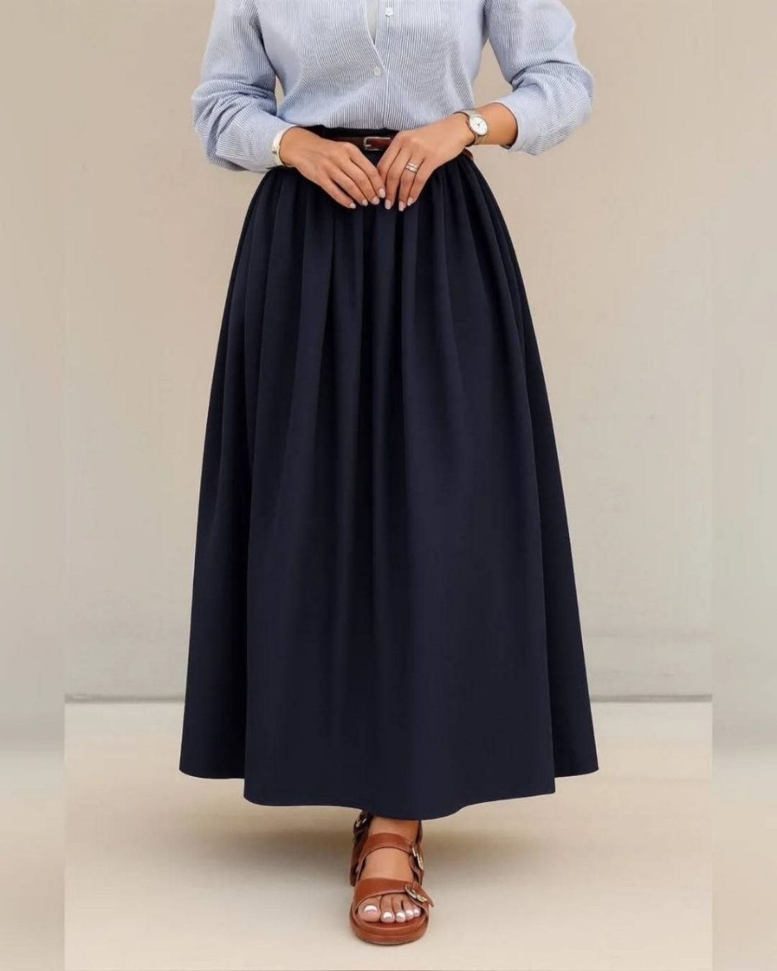 ♻️مدل دامن : مهلا♻️جنس :لینن با کیفیت عالی♻️رنگبندی: مشکی. کرم. قهوهای وسورمه ای♻️سایز 1مناسب 38الی 42♻️سایز 2مناسب44الی48♻️پشت کار برای استایل بهتر کش خورده( کمر)♻️قددامن حدود95