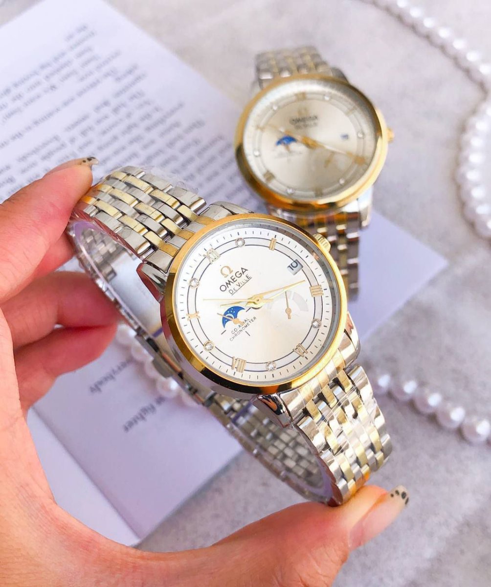 369256 ست ساعت امگا بند استیل دورنگ | طراحی کلاسیک و ماندگار ✨ صفحه سفید با طراحی ساده و شیک ✨ کیفیت عالی با موتور تقویم‌دار ✨ شیشه برجسته و زیبا ✨ بند استیل دورنگ مقاوم و جذاب ✨ شش ماه گارانتی موتور به همراه کارت گارانتی ✨ ارسال با جعبه کادویی مخصوص ساعت ✨ قطر شیشه: مردانه حدود 35 میلی‌متر | زنانه حدود 28 میلی‌متر 🎁 انتخابی خاص برای هدیه و مناسبت‌های خاص