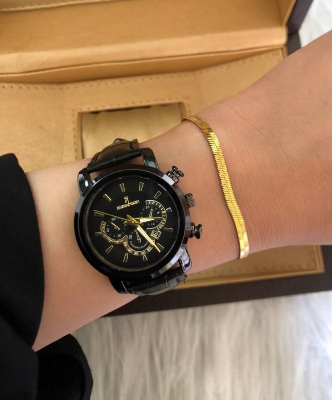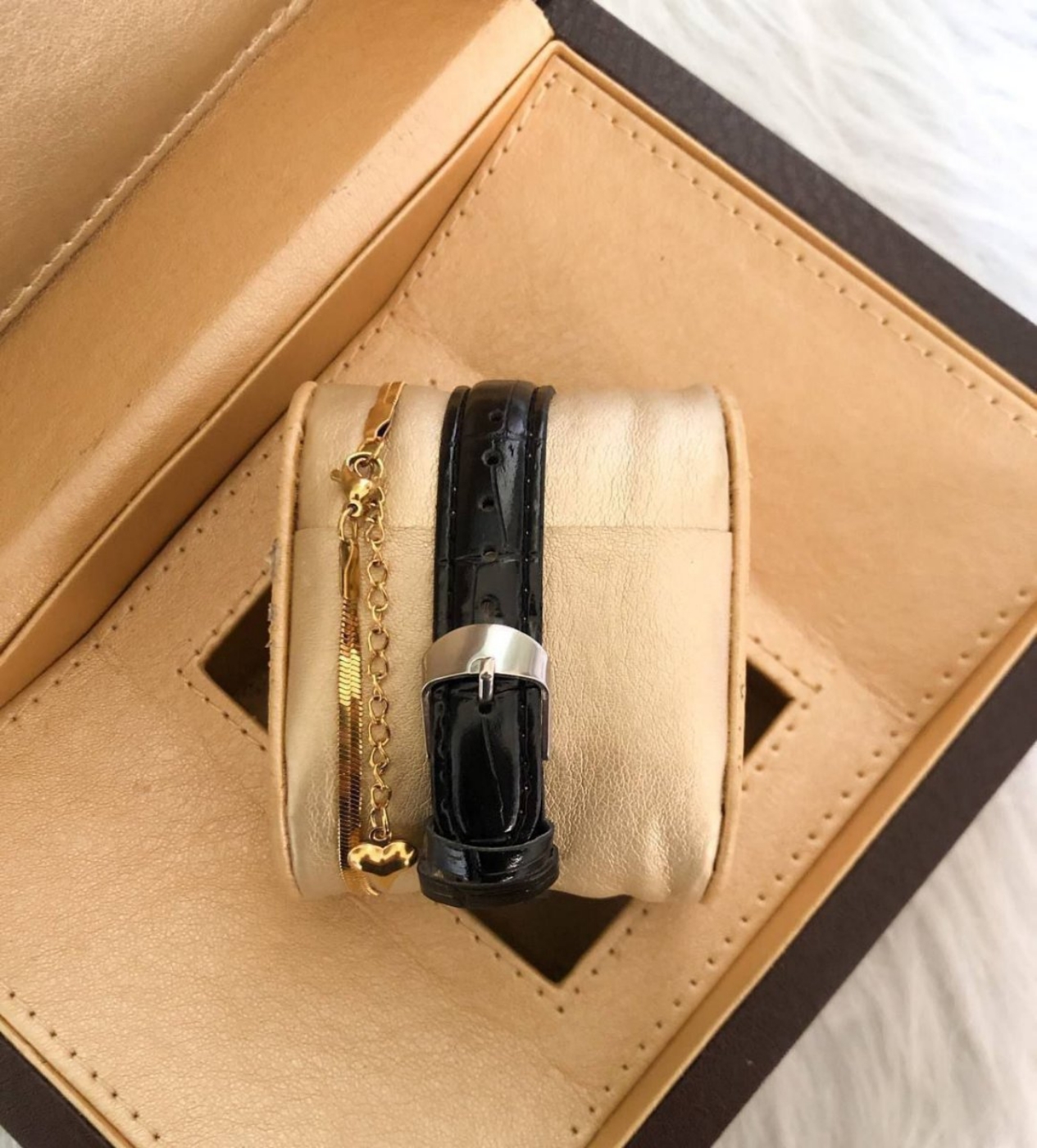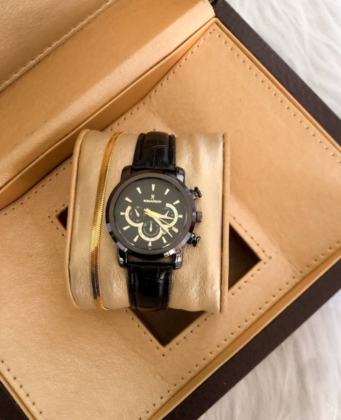 ✨ ساعت زنانه بند چرم مشکی صفحه مشکی مارک رومانسون ✨