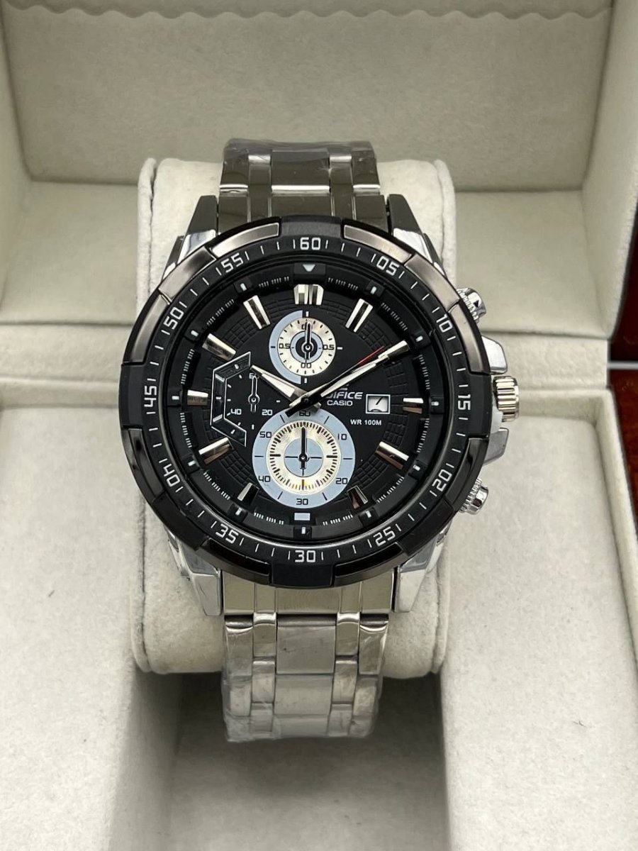 369471 ساعت مچی مردانه مارک کاسیو طرح سه موتوره ✨ تک موتوره با عملکرد دقیق ✨ دارای تقویم برای راحتی بیشتر ✨ کیفیت عالی برای استفاده طولانی ✨ بند استیل نقره‌ای و صفحه مشکی شیک و جذاب ✨ 6 ماه گارانتی موتور برای اطمینان خاطر ✨ دارای جعبه کادویی و کارت ضمانت ✨ در حد رنگ ثابت و مقاوم ✨ موجودی محدود: فقط 50 عدد ✨ قطر شیشه ساعت: حدود 38 میلیمتر