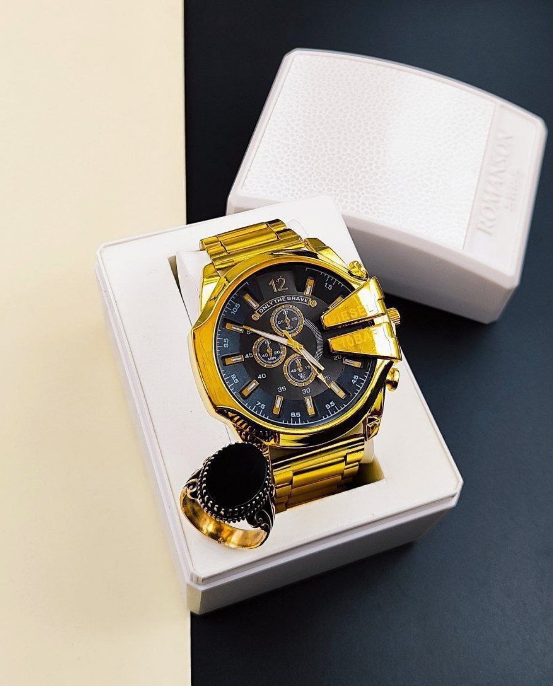 ست ساعت دیزل شاخ‌دار مردانه و انگشتر مردانه369566