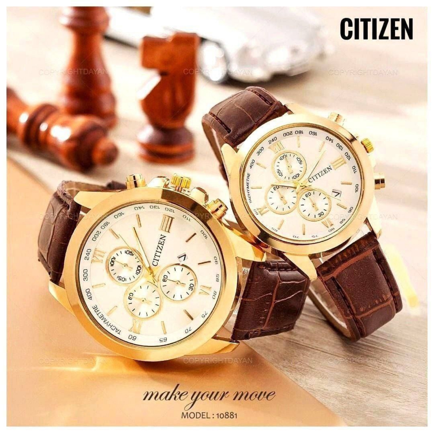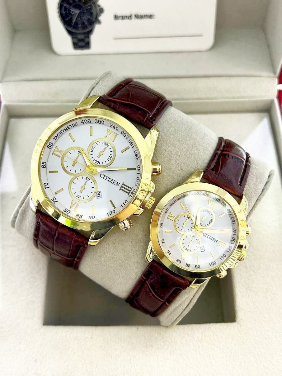 ست ساعت سیتیزن بند چرمی قهوه‌ای369140