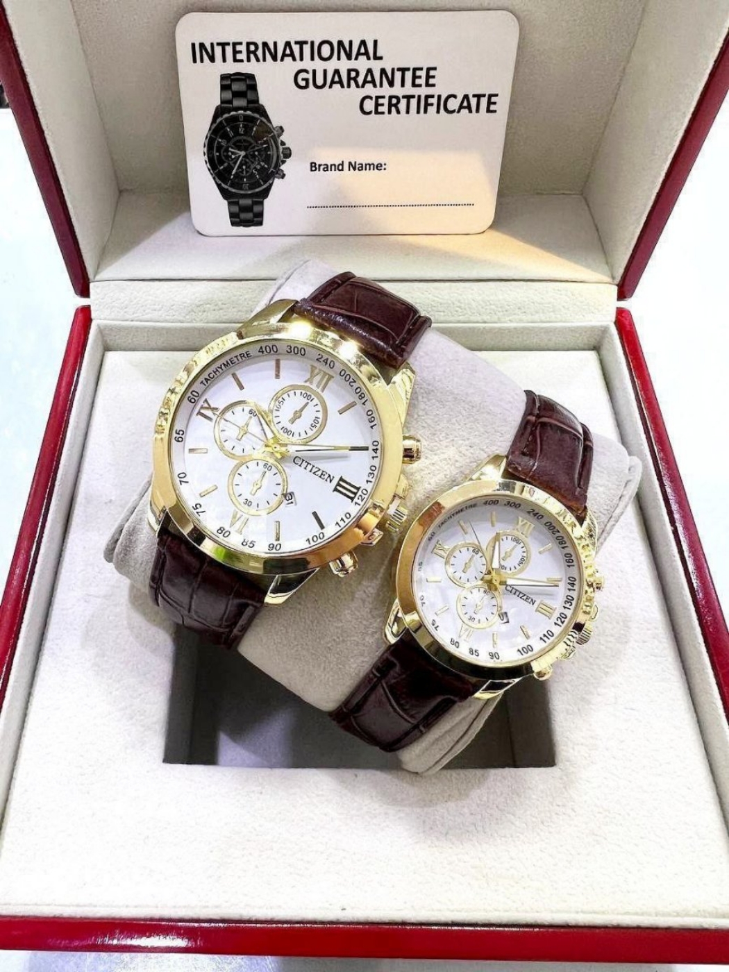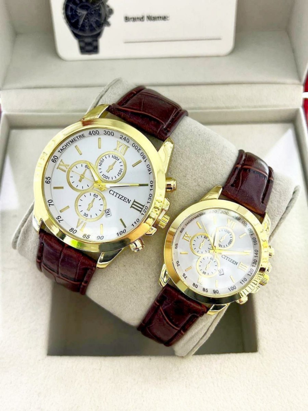 369140 ست ساعت سیتیزن بند چرمی قهوه‌ای | صفحه سفید کلاسیک سادگی و اصالت در کنار کیفیت عالی 🎈 طرح سه موتوره 🎈 دارای تقویم 🎈 بند چرمی با دوام 🎈 جعبه‌ی کادویی شیک 🎁 انتخابی مناسب برای هدیه و مناسبت‌های خاص