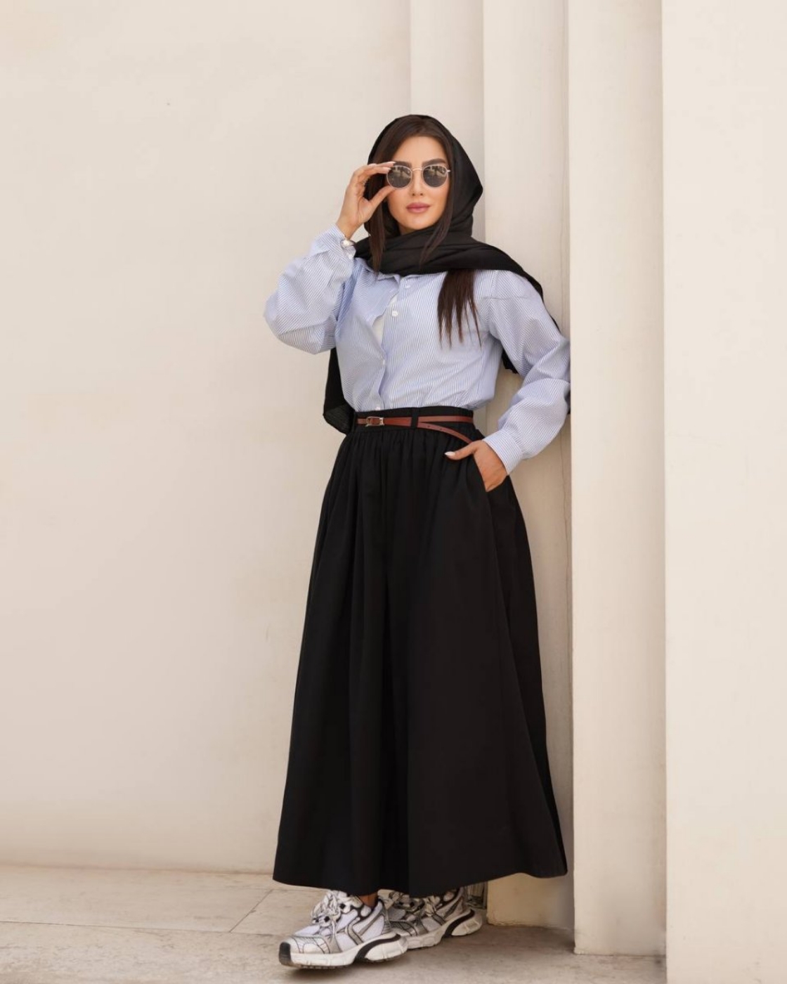 توضیحات : این دامن فول چین و جیب دار می باشد