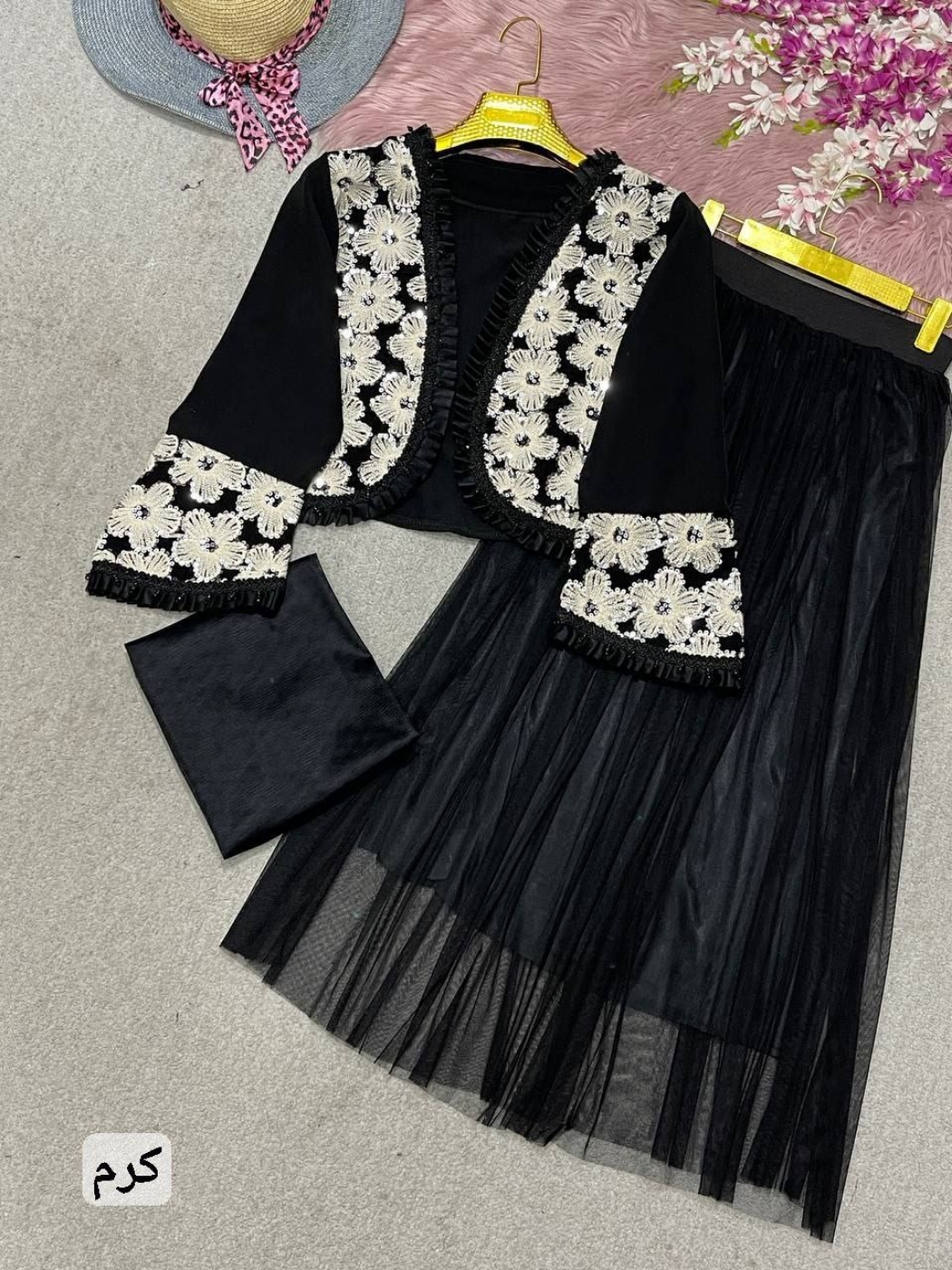 🪡جنس : کت کرپ مازراتی با خرجکار گلدوزی شده دامن و شال تور👌🍃
