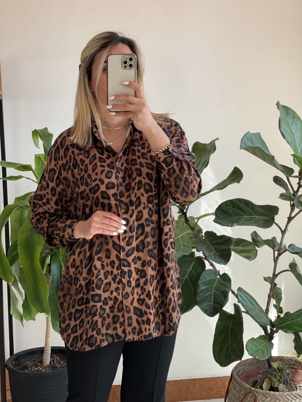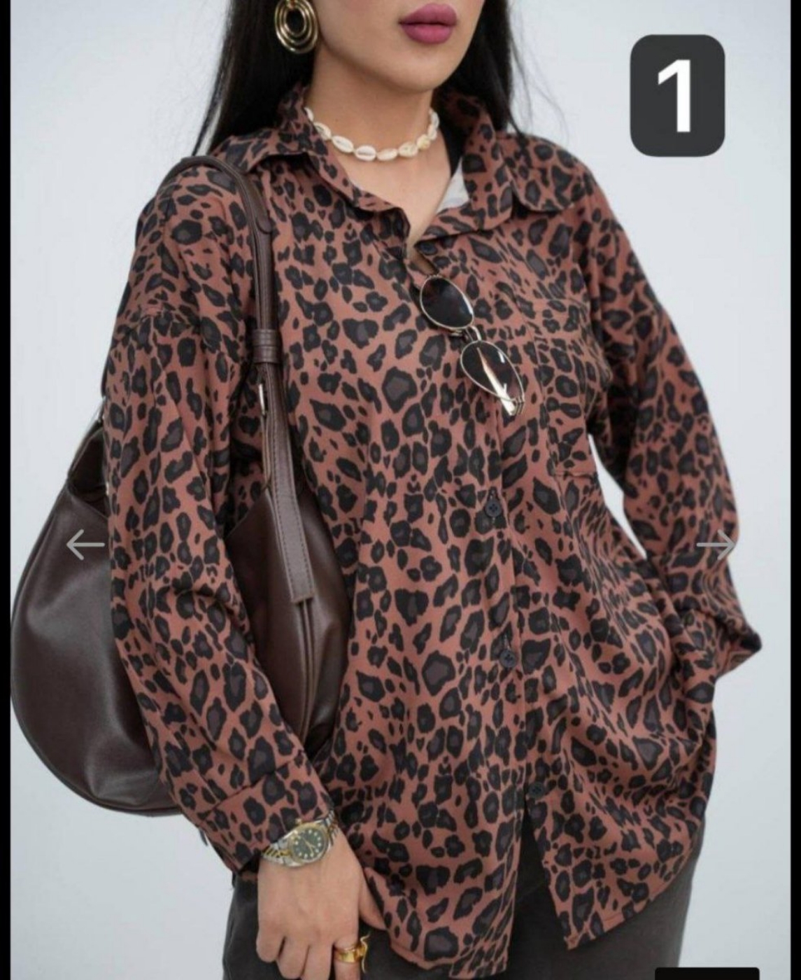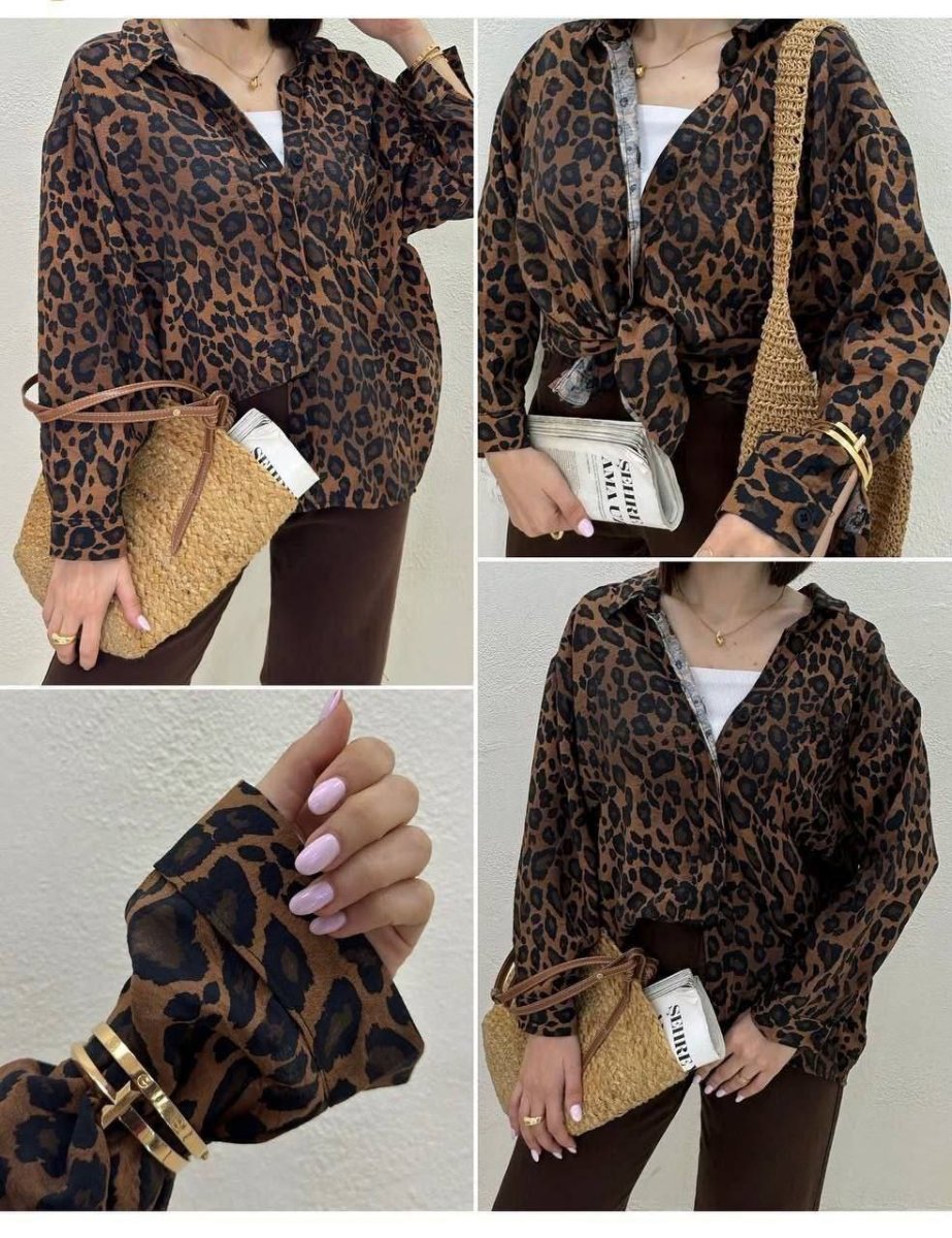 93110💞نام : شومیز ریکو💞جنس : بوگاتی با کیفیت(سوپر صافت)💞رنگ بندی : پلنگی💞سایز ها : فری 36/46✅قد70✅دور سینه 105✅قد آستین 55