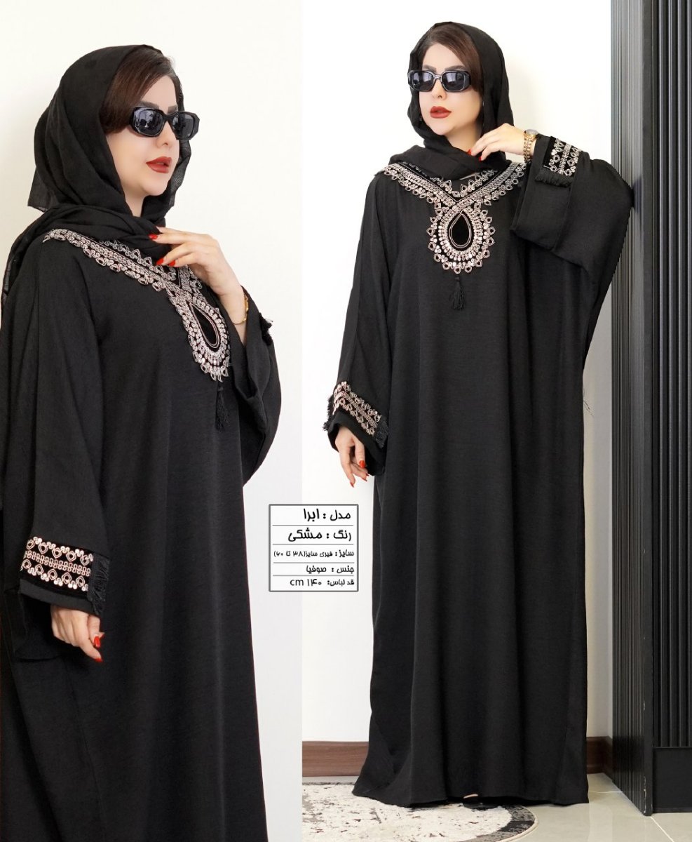 89736ابراجنس : صوفیا درجه یکرنگ بندی : مشکیسایز ها : فیری سایز 38 تا 60 حدود قد : 140 خرجکار : اپلیکه گلدوزی و پولک دوزی - نوار ریش ریشی و منگوله