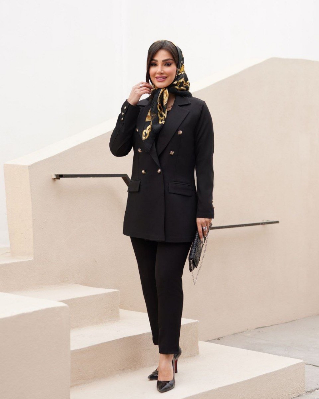 سایز یک دور سینه ۱۰۲ دور کمر ۹۴ دور باسن ۱۰۶ دور بازو ۳۸ انداز شانه ۳۹