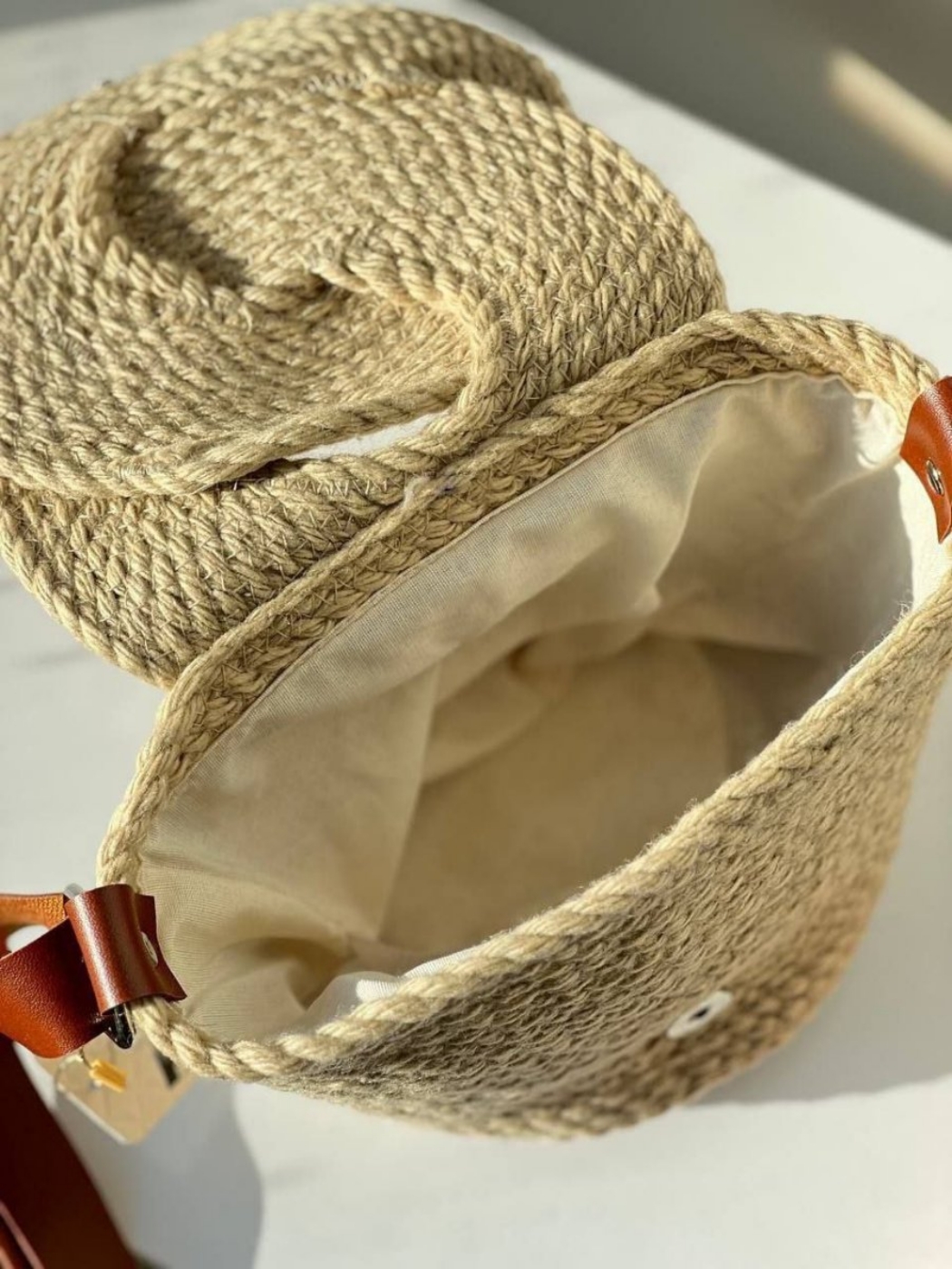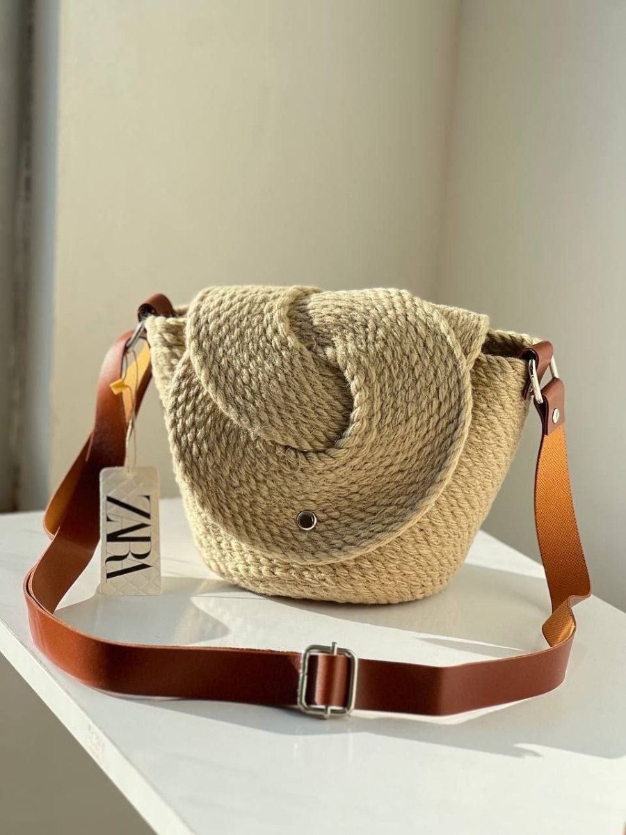 کیف کنفی پیچی ابعاد20/15 دارای بند بلند چرمی داخل کار استر دارد